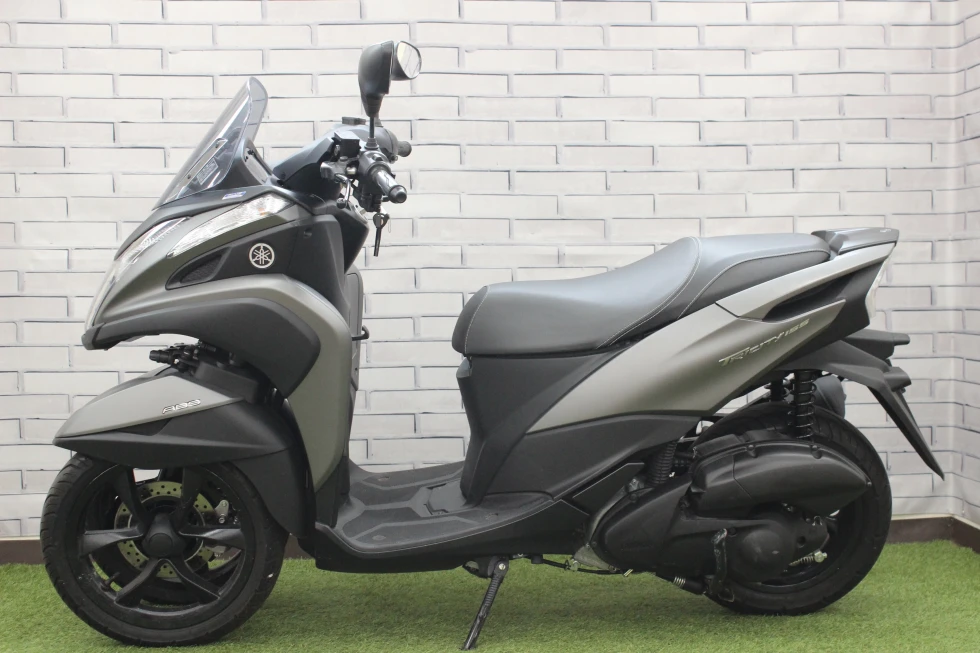 前輪2輪もあるド派手な見た目もトリシティ155!ヤマハのLMW(リーニングマルチホイール)でコーナー旋回時の安定性も確立する技術!是非ご体感くださいませ!