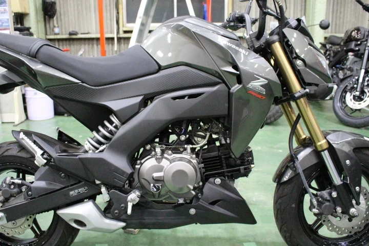 カワサキが販売を行っていたKSR110の流れをくむZ125やはりミニバイク12インチクラスの操作性は楽しくパワフルな単気筒エンジンと倒立フォークなど本格的な足回りで