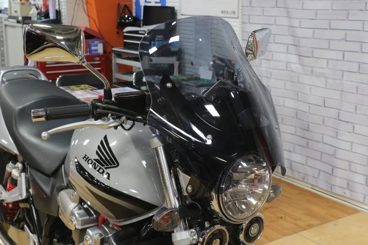 万が一の転倒の際も安心なエンジンスライダーのほかにもツーリング時の走行風を防いでくれる大型スクリーンやドレスアップには欠かせないフェンダーレスキット、