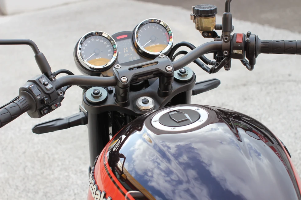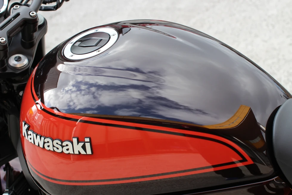 Z1(900スーパー4)オマージュのネオレトロネイキッドとして登場しただけあって、丸いタンクやエンジンカバー、テールカウルなど、Z1をイメージさせるディティールに包まれている。それは車体色も同様で、Zファンの間で「火の玉」と呼ばれているカラーリングを復刻(キャンディトーンブラウン×キャンディトーンオレンジ)