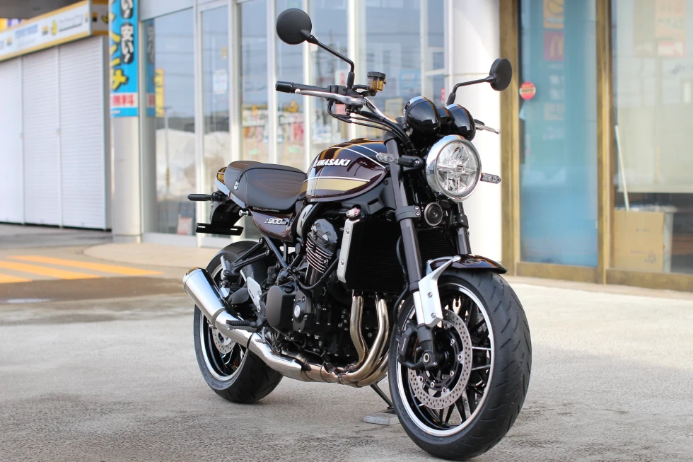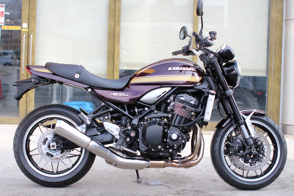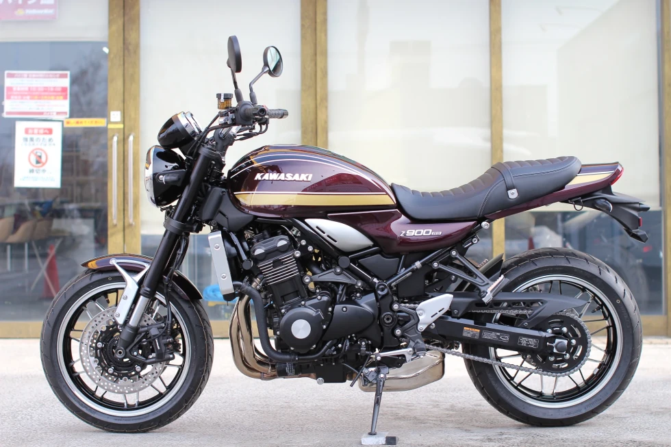 2017年の発売以来、往年の名車Z-1(900スーパー4)を彷彿させるスタイリングで定番車種としての人気を確たるものとしたZ900RSの2025年モデル。性能や装備に変更はないが、タンク横エンブレムが、大文字で表記される古いタイプのものに変更された。※ABS装着・ETC2.0車載器標準装備。