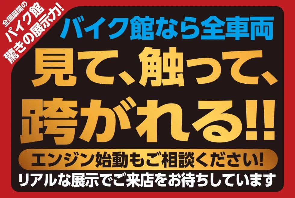 バイク館全店で【商談予約割引】を実施しております。まずはお近くの店舗に在庫確認をお願い致します。