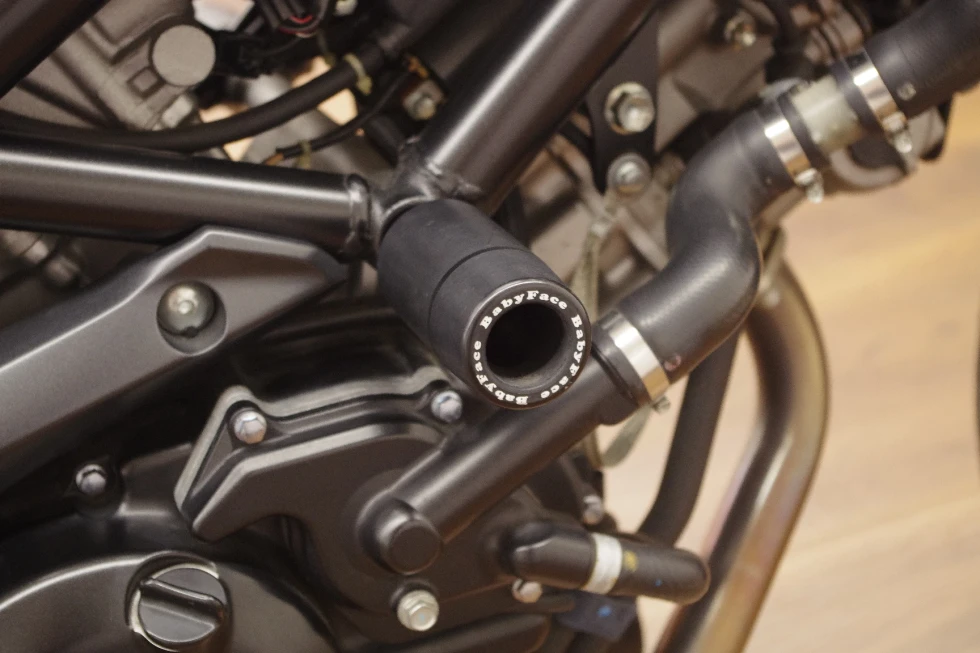 アクラポビッチマフラーやETC&USB、エンジンスライダー等あるとうれしい装備がしっかり装備されているSV650!