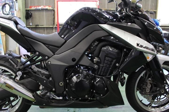 こちらの車両Z1000はSugomiDesignをコンセプトとしていてそのコンセプト通りスゴミのある特徴的なデザインと137馬力のエンジンを奏でる両側出しのマフラーなど攻撃的な印象で所有感のあるバイクとなっております。