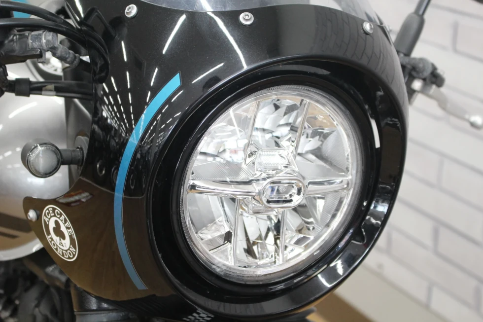 クラブマンスタイルのハンドルと専用シートによる前傾姿勢のライディングポジションで