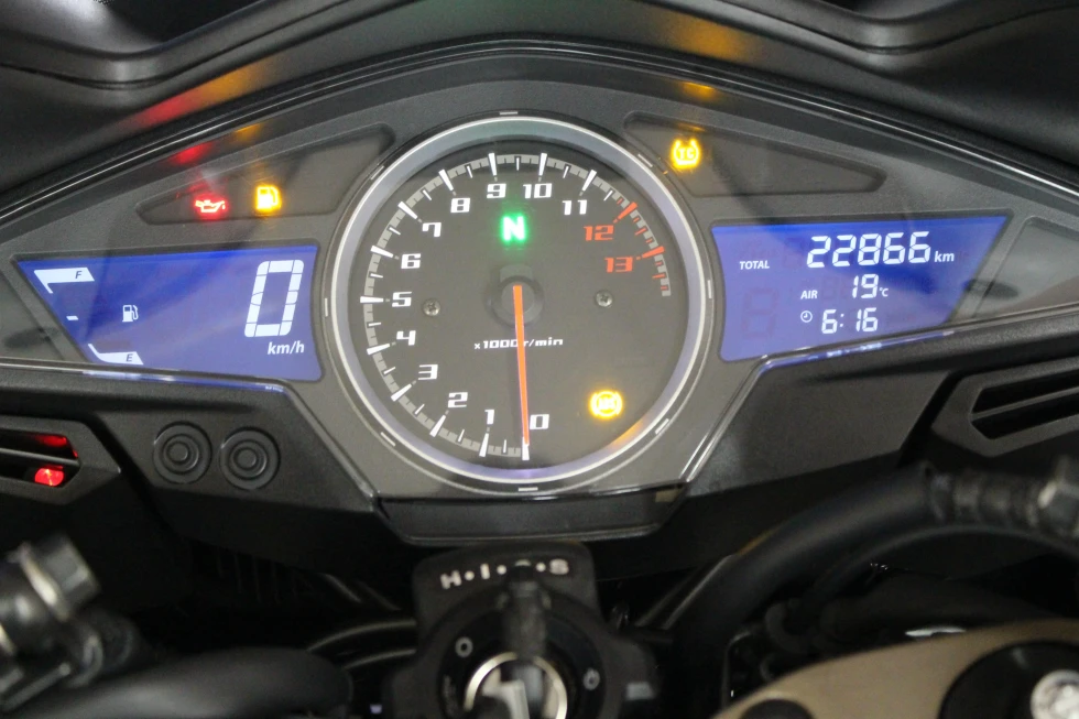 ETC標準装備、クイックシフター、純正グリップヒーターとボックスが装備済。
