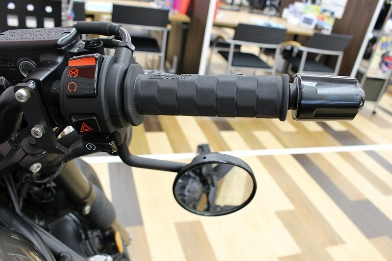 左右サイドバックサポート&バック、社外ヘルメットロック、社外レバー、DAYTONAゲルグリップ、バーエンド、純正ミラー下付けカスタム