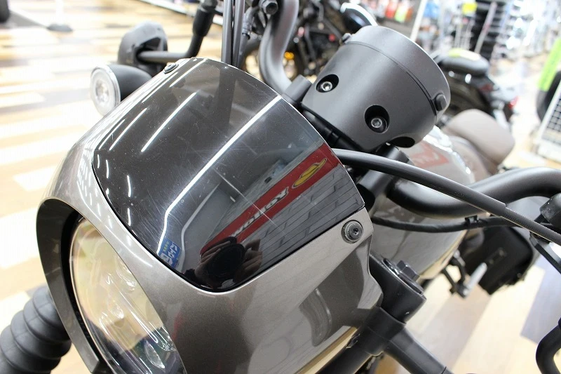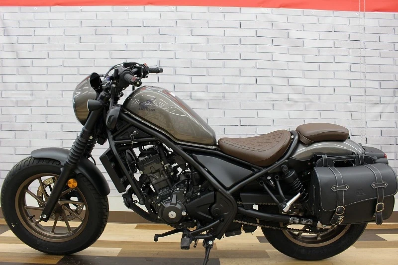 HONDA「REBEL250 S Edition」2023年モデルです。日本で最も売れてる軽二輪として、人気の高いモデルです。こちらの車両はSエディション限定装備である、ヘッドライトカウル、フォークブーツ、ダイヤモンドステッチのシートなどを装備しております。