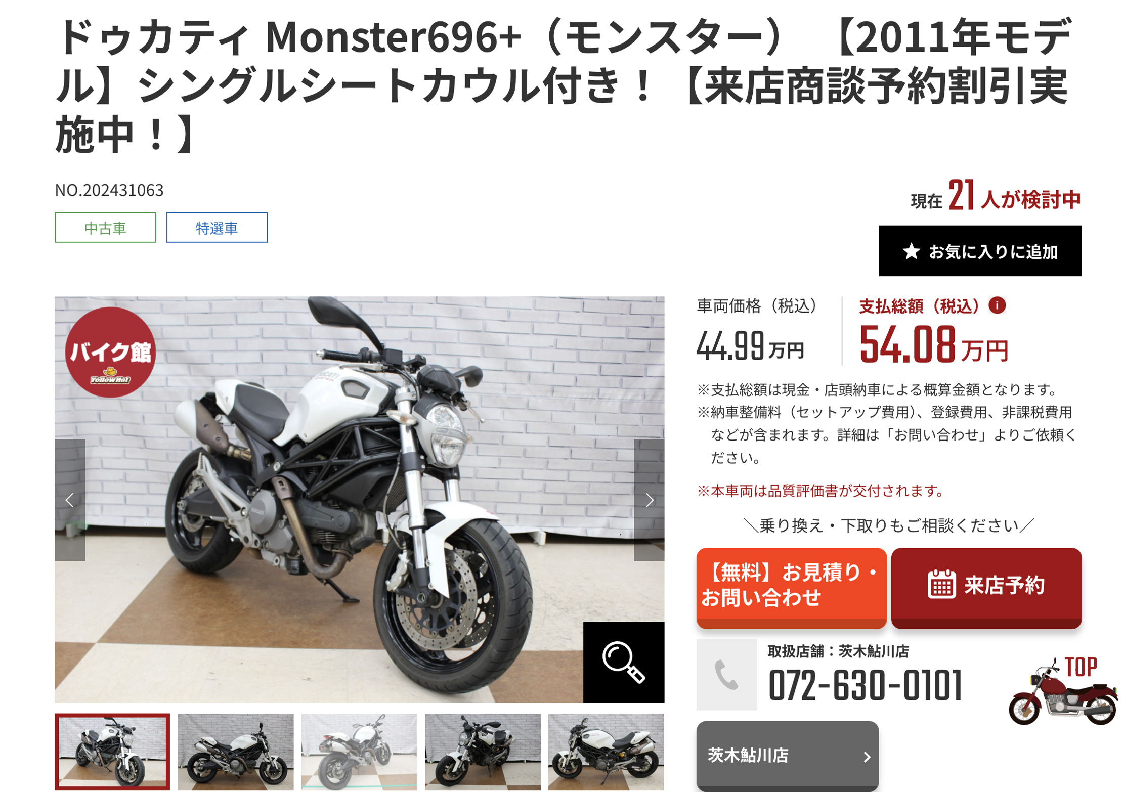 また、バイク館は東京海上日動の正規代理店でもあるため、自賠責保険はもちろん、任意保険や盗難保険、延長保証の同時加入も選べます。見積もり依頼により支払総額や返済シミュレーションも確認でき、無理のない購入計画が立てられます。