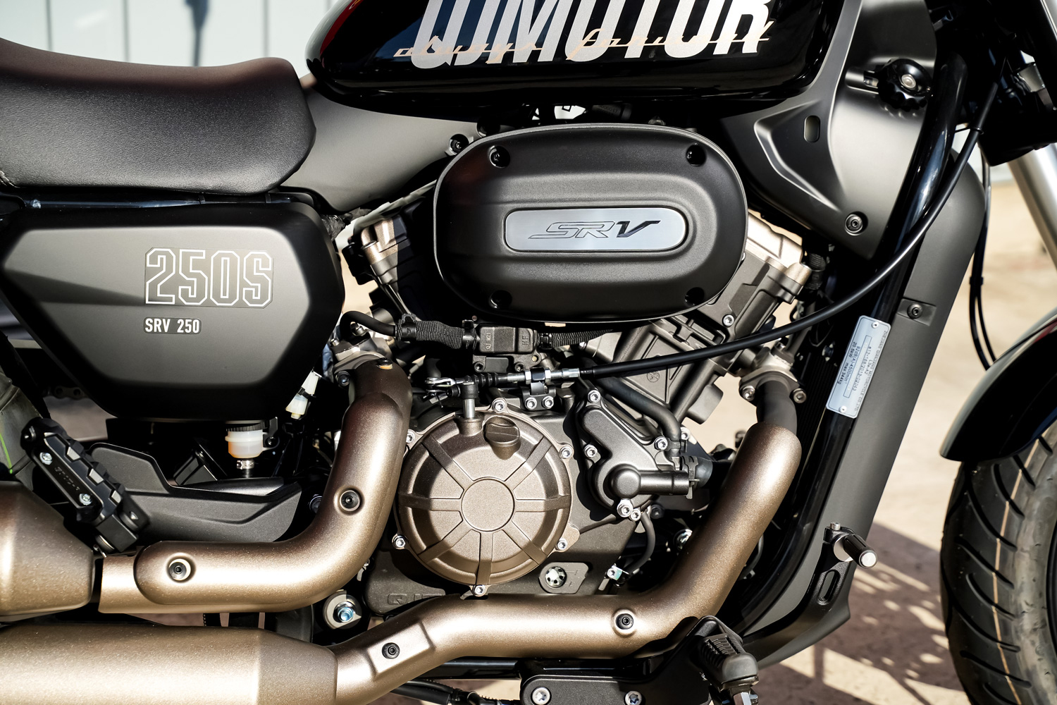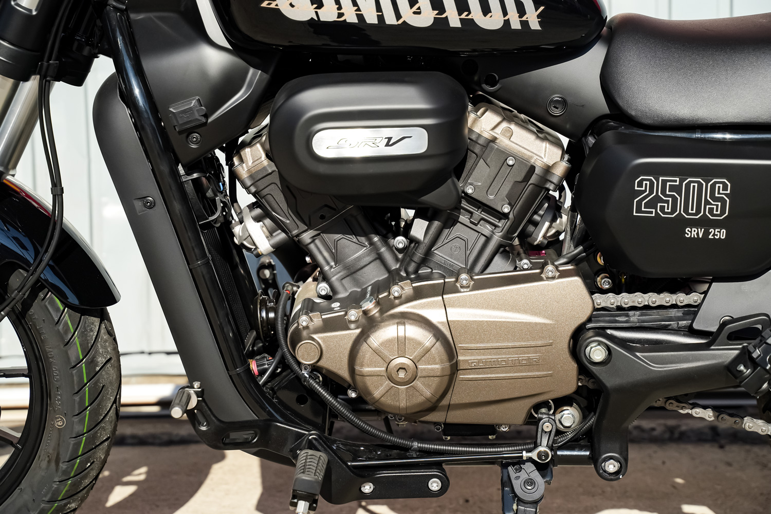 QJ MOTORのSRV 250は、このクラスでは珍しくなりつつあるVツインエンジンを搭載しているモデルです。