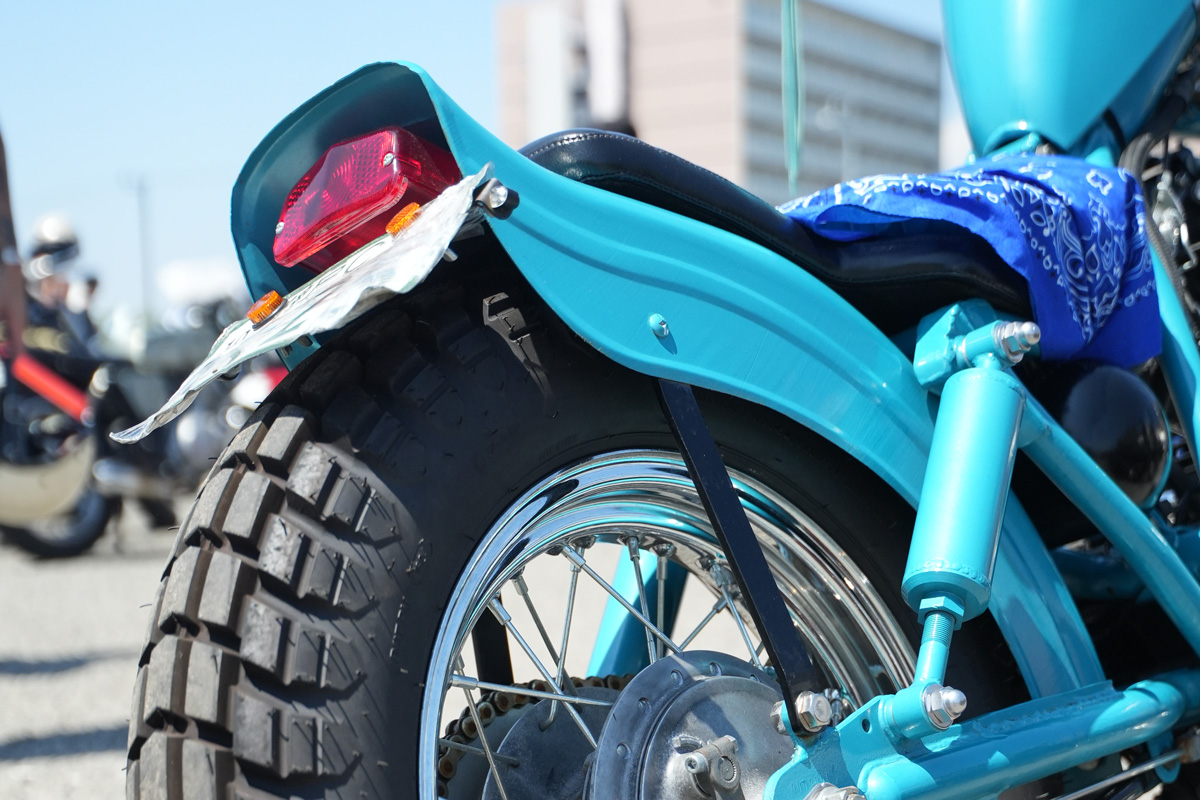 フェンダーのカスタムは、SR400の印象を変えるパーツです。泥はね防止を犠牲にしてでも後方をスッキリ見せるショートフェンダーやフェンダーレス化も可能です。